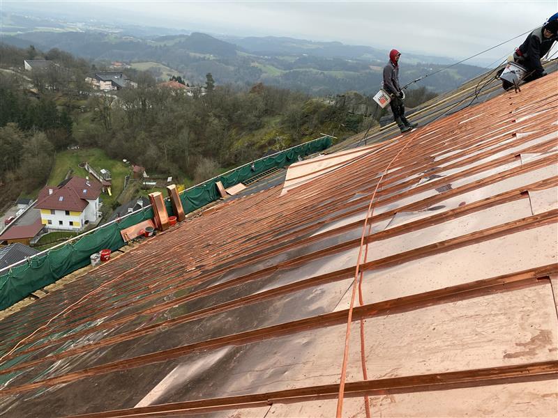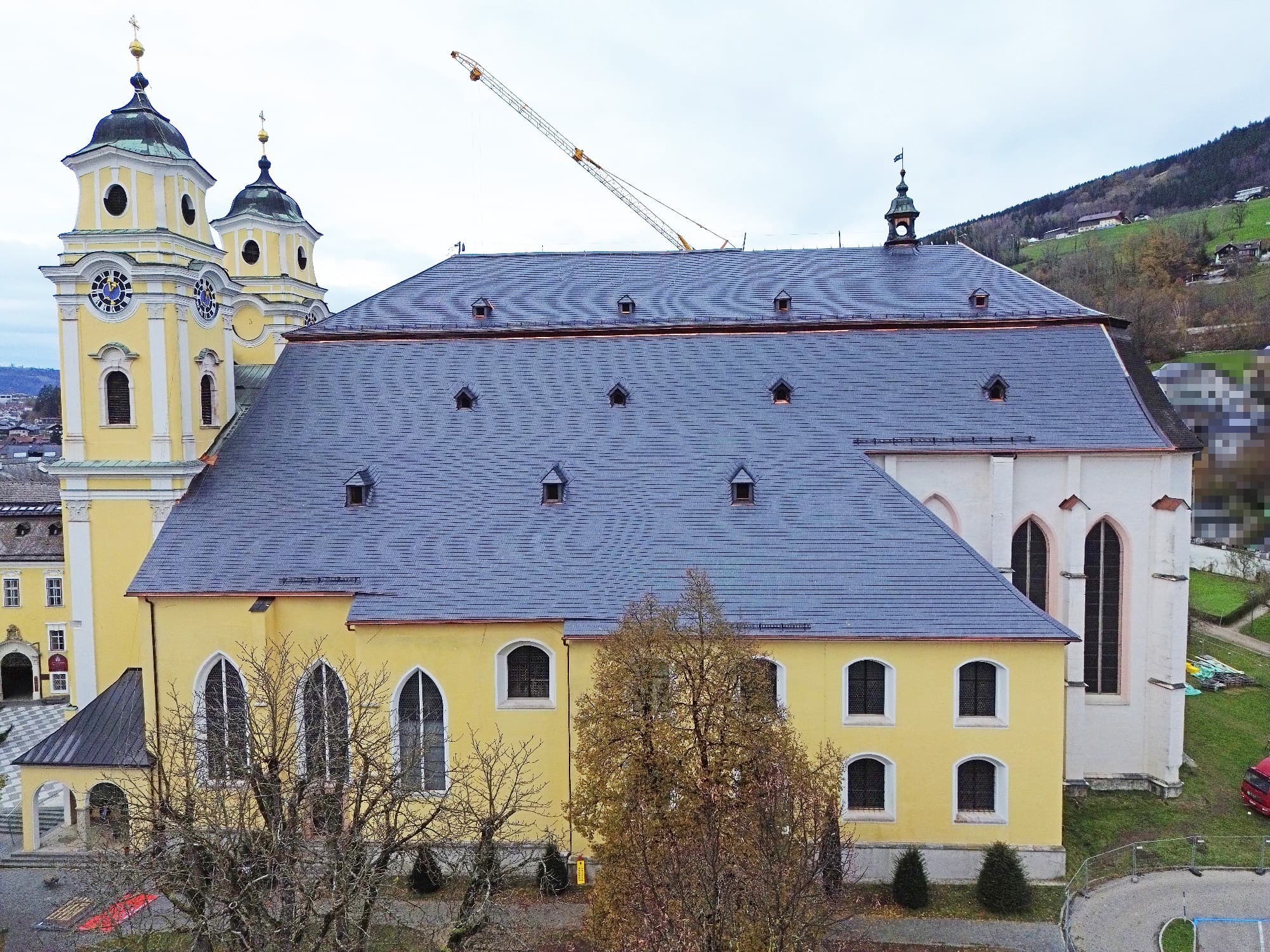Das Dach der Basilika Mondsee, die dem heiligen Erzengel Michael geweiht ist, wird saniert. Das alte Dach aus Eternit wird durch eine Neueindeckung mit Naturschiefer ersetzt.