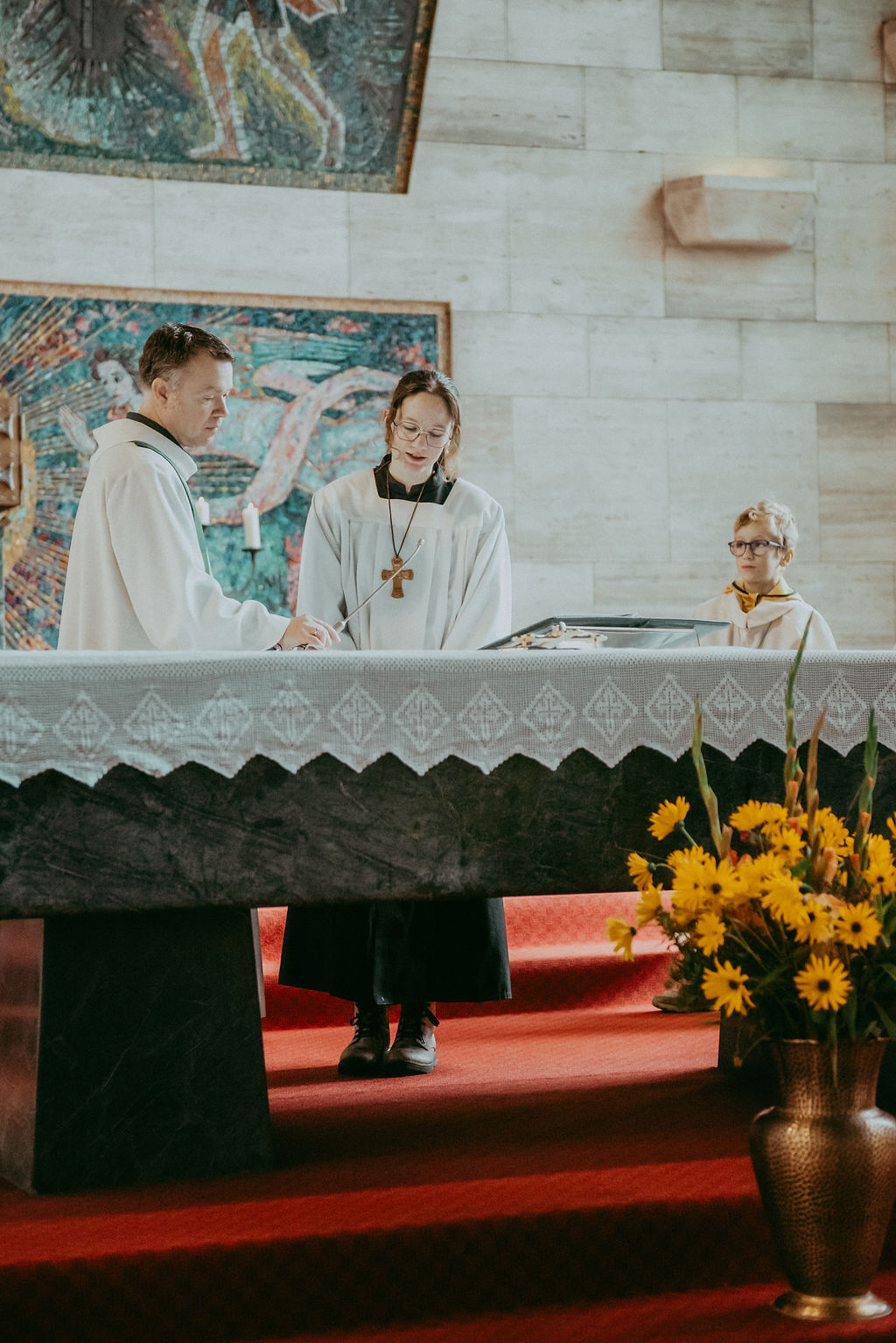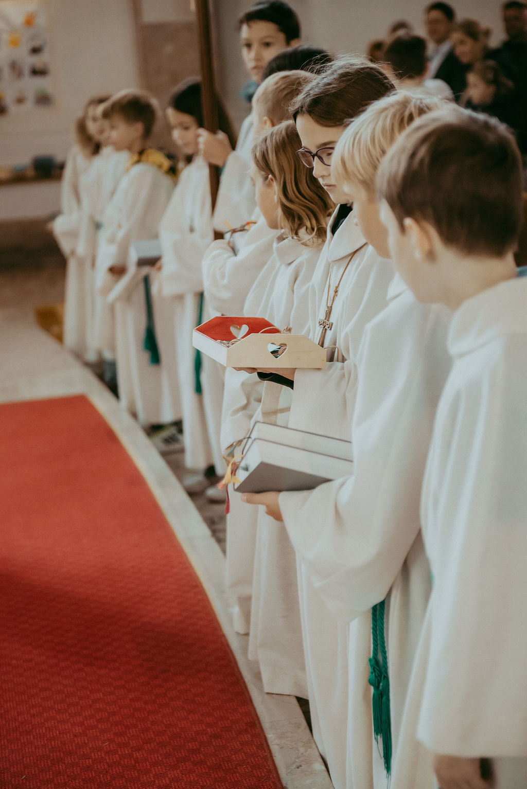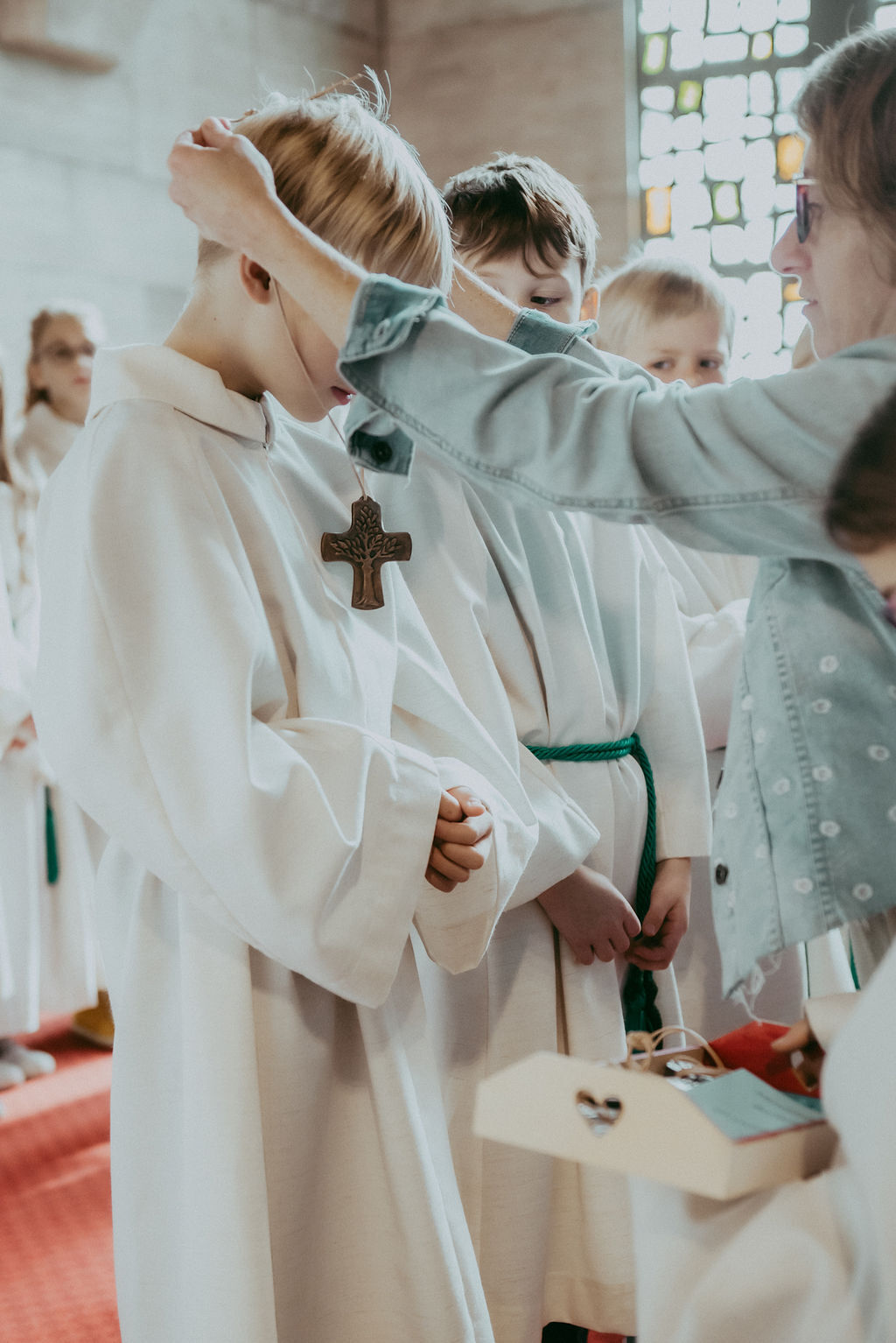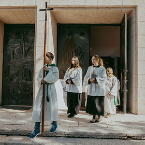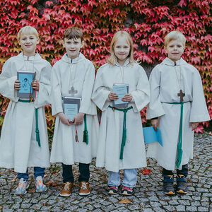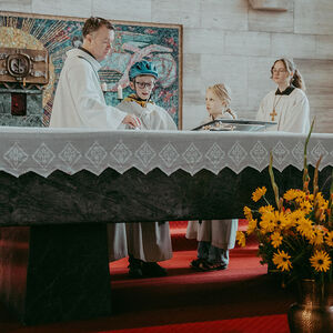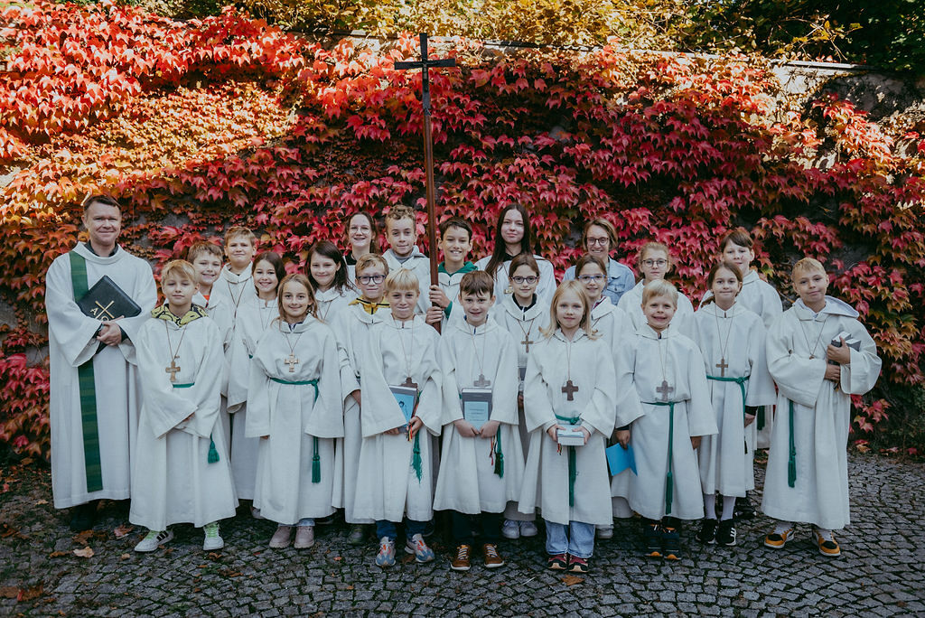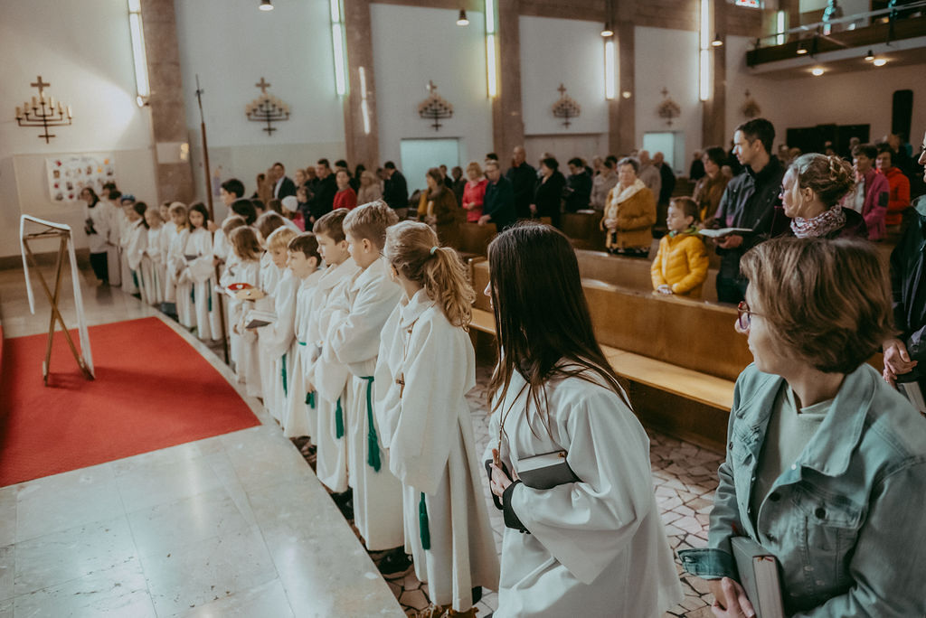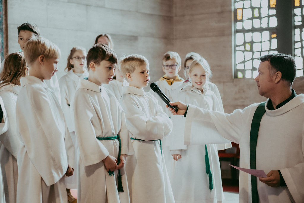 René Prinz-Toifl betonte, dass es Mut erfordert, einen Dienst im Altarraum zu übernehmen. Im Anschluss überreichte Christina Sporn den neuen Ministrant:innen die gesegneten Kreuze.