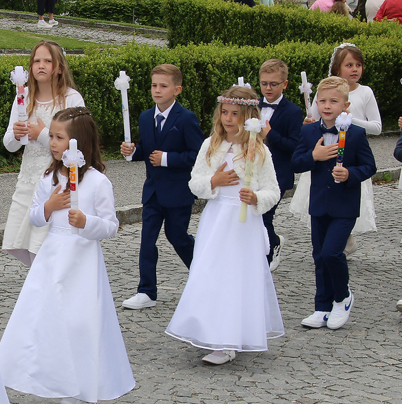 Am 26. Mai 2024 war es endlich soweit: 27 Kinder aus der Pfarre St. Peter/Wbg. empfingen zum ersten Mal den Leib Christi. Unter dem Motto „Jesus liebt uns von Herzen“ wurde die Erstkommunion gefeiert.
