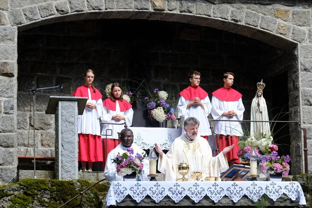Bei gutem Wetter feierten viele Wallfahrer die Pilgermesse am Freialtar mit. Maria, die Königin des Friedens. Pfarrer Sperker erwähnte in seiner Predigt die vielen Kriegsgebiete und Krisenherde auf der Welt und predigte für den Frieden in Geschwisterlichkeit. In den 18 Fürbitten wurde für den Frieden in den verschiedenen Ländern gebetet.