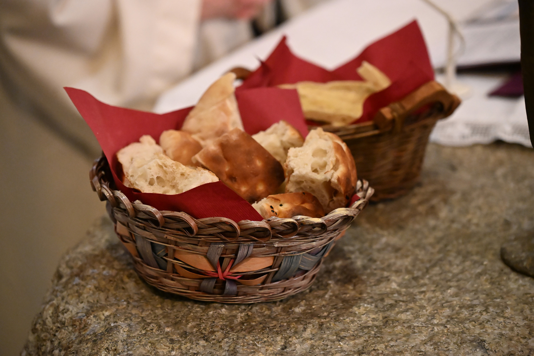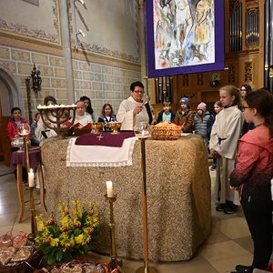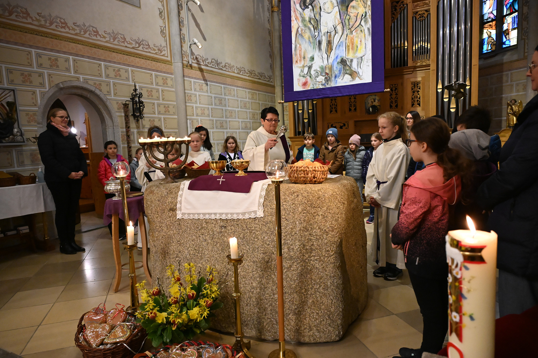 Segnung der Lebkuchenherzen und Brote, welche von den Erstkommunionkindern zum Altar gebracht wurden.