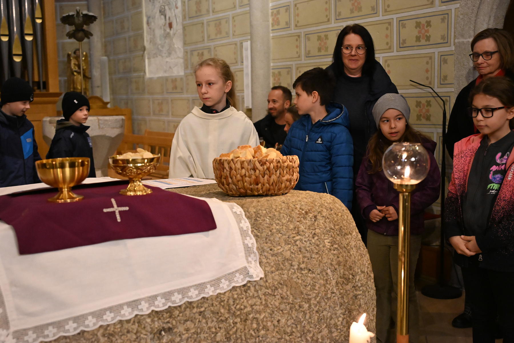 Nach einem beschwingten Musikstück der "Joschis" begrüßte Waltraud Möstl die Feiergemeinschaft am Sonntag "Laetare" (30. März 2025), wie der 4. Fastensonntag auch genannt wird und der 21 Tage vor Ostern liegt. "Laetare" kommt vom Lateinischen und bedeutet "Freue, dich", denn die Mitte der Fastenzeit ist überschritten und Ostern kommt näher.