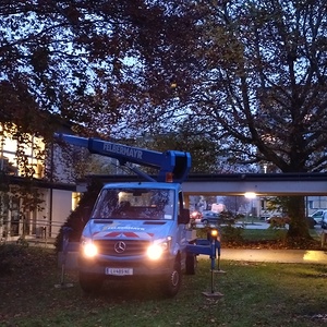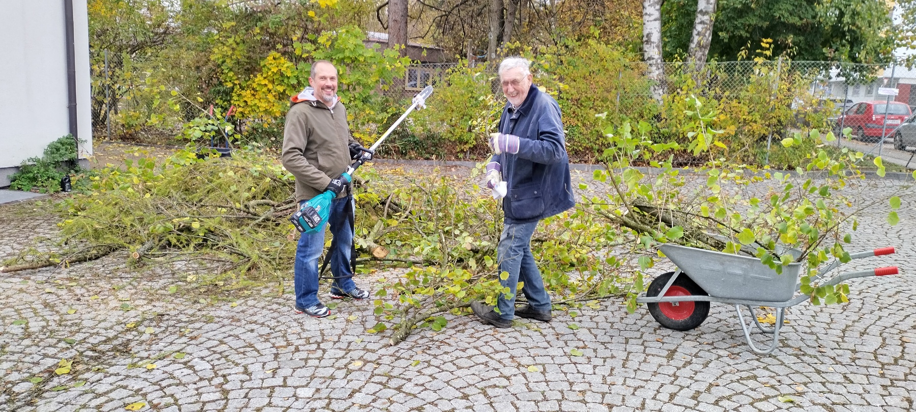 Im Pfarrgemeinderat haben wir mal darüber gesprochen, dass etwas Hausmeisterarbeit ansteht und nach dem heftigen Regenguss im August war auch klar, dass die Dachrinnen und die Lichtschächte beim Pfarrheim mal wieder besucht werden sollten. Dann wären da auch noch die Sträucher rund um die Pfarranlage und die Bäume zum Kindergarten, ........................................................