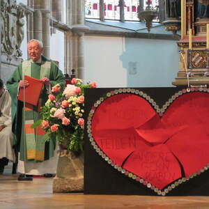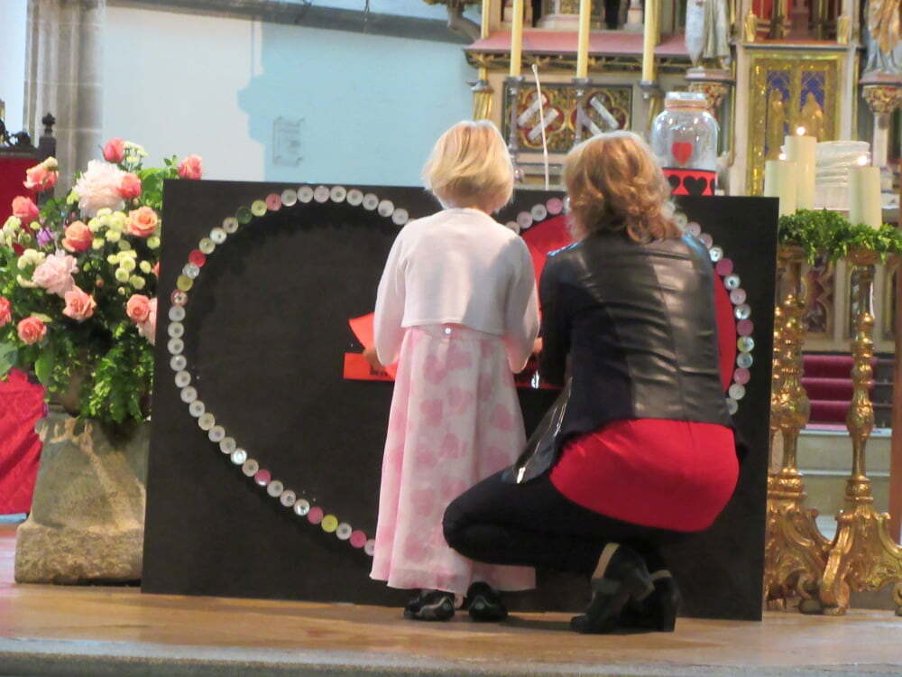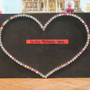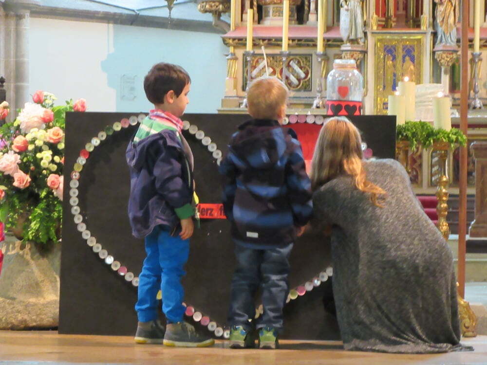Trösten, zuhören, andere gern haben, Zeit schenken waren die Werte, die die Kinder mit den Kindergartenpädagoginnen und Helferinnen zu einem großen Herz zusammenfügten.