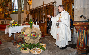 Am Sonntag, 17. September 2023 lud die Pfarre Gschwandt alle Gemeindebürger:innen zur Feier des gemeinsamen Erntedankfestes mit Gottesdienst auf der Wiese hinter der Kirche ein.
